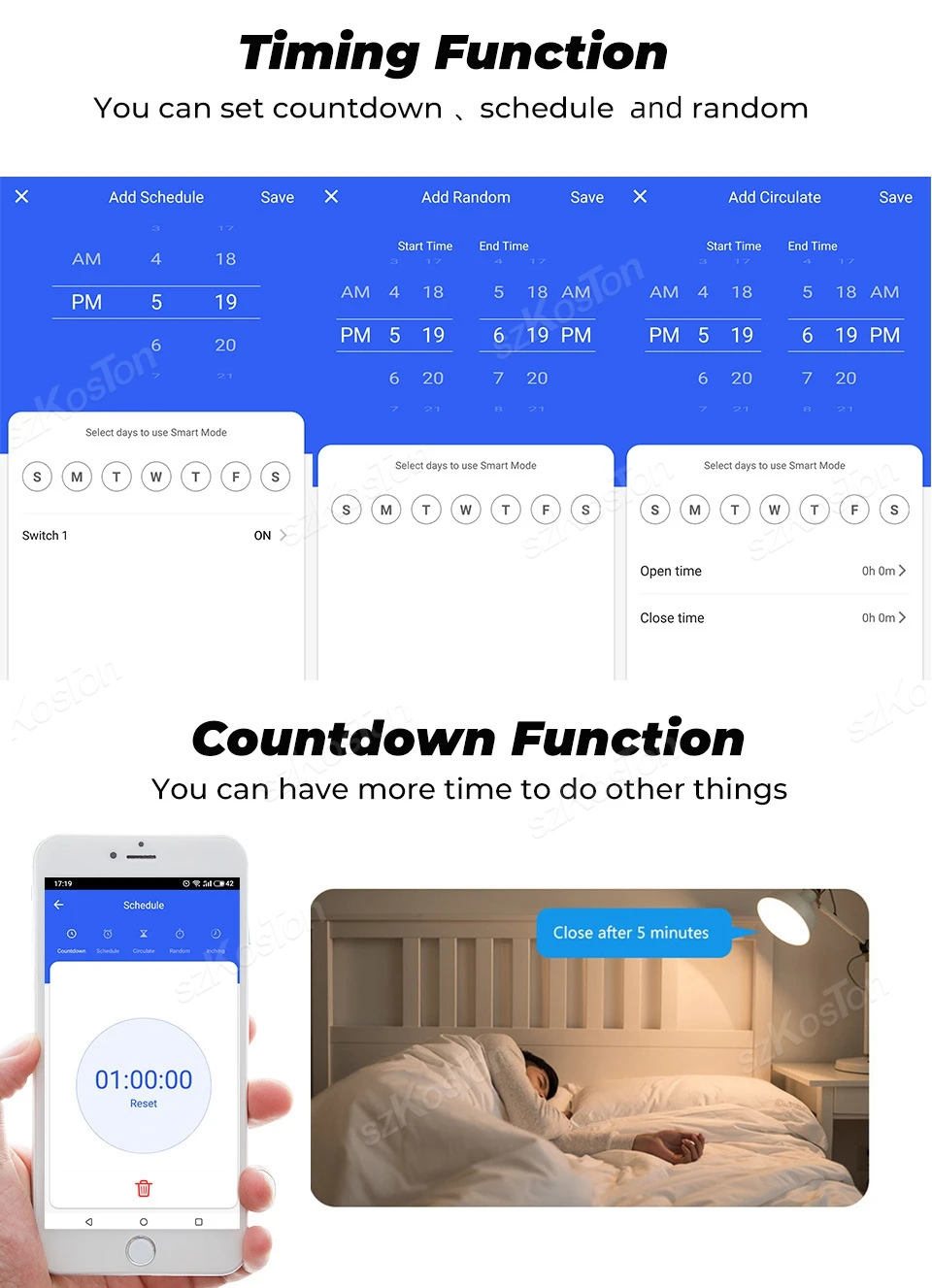 『Mobile APP Control』Take full remote control of the switch module via the Smart Life or Tuya smart app. Easily manage power on/off, timing, countdown and other functions from anywhere as long as your phone has an internet connection.