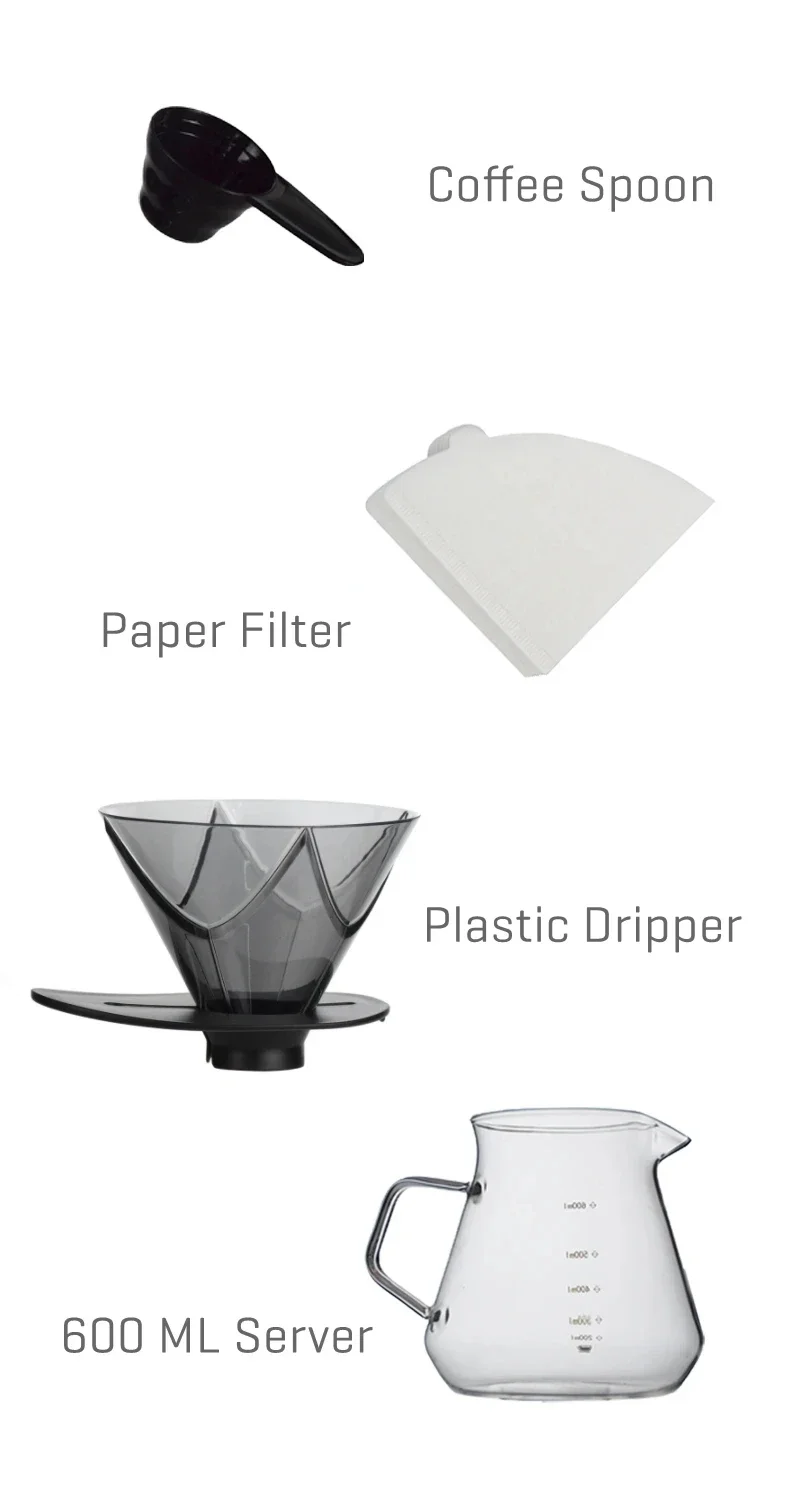 Pour over Coffee Dripper Set 600Ml Glass Server V02 Funnel Drip Maker Brew Cup Coffee Set with Filter Paper