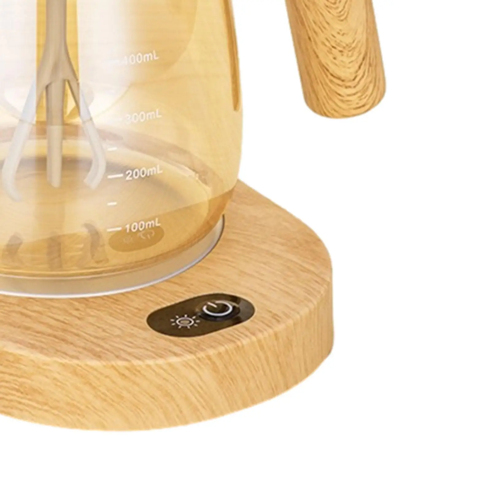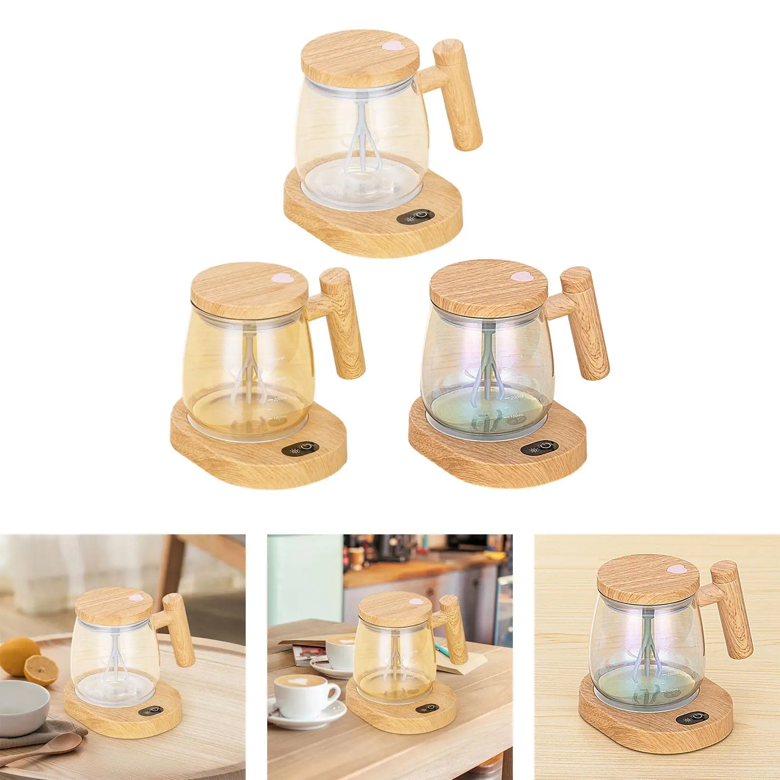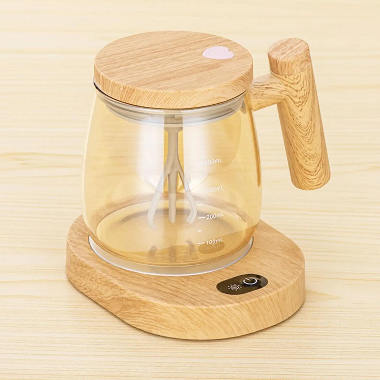 【Durable Material】Electric mixing cup is made of high borosilicate glass material, high temperature resistance. The lid and handle are made of wood, durable and wear resistant.