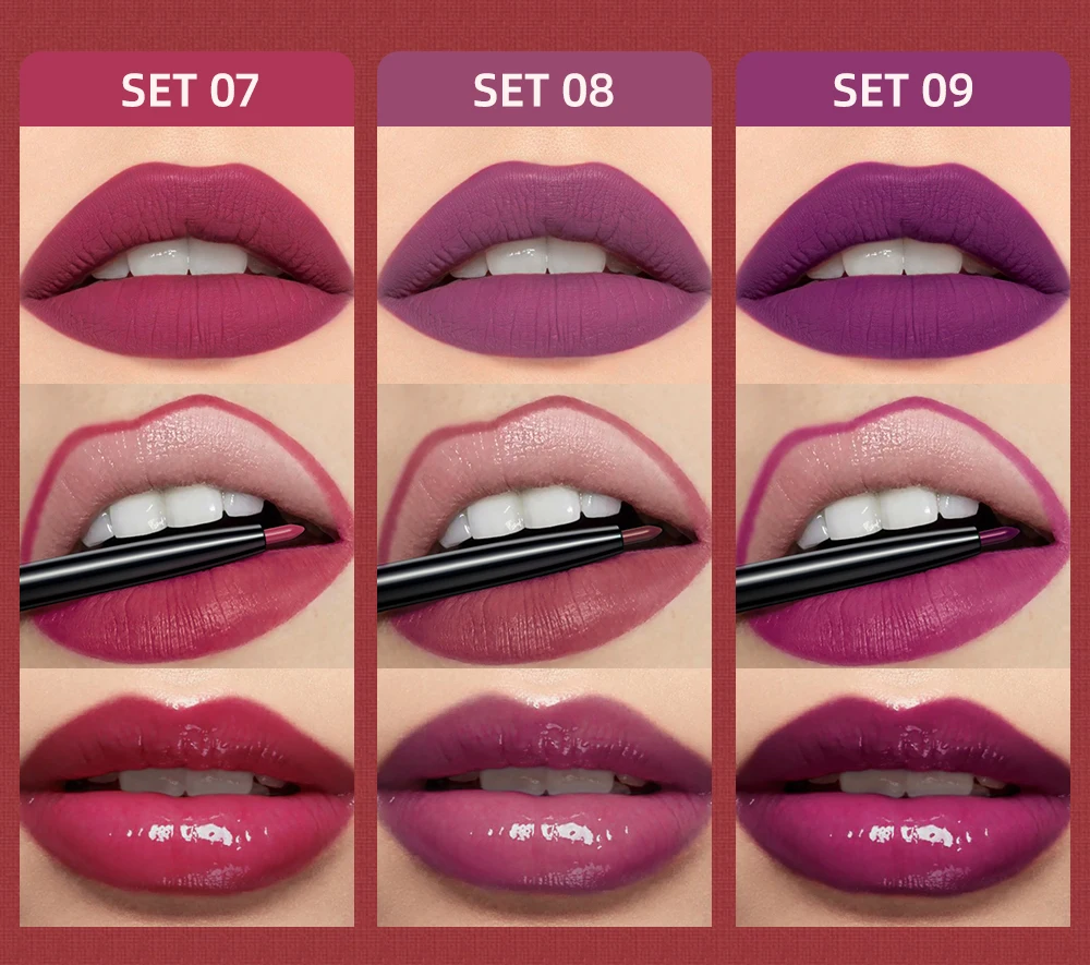1* Matte Lipstick+ 1* Lip Glaze+1* Lip Liner