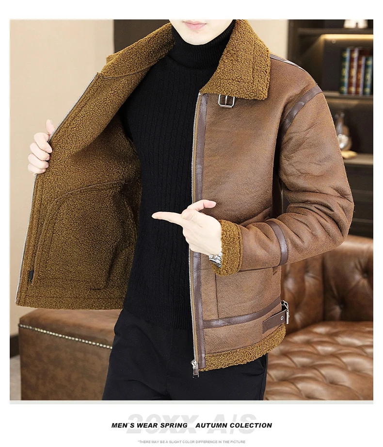 2024 Winter Men New Faux Lamb Fur Coats Men'S Korean Thick Warm Casual Jacket Male Turn down Collar Imitation Fur Outerwear G608