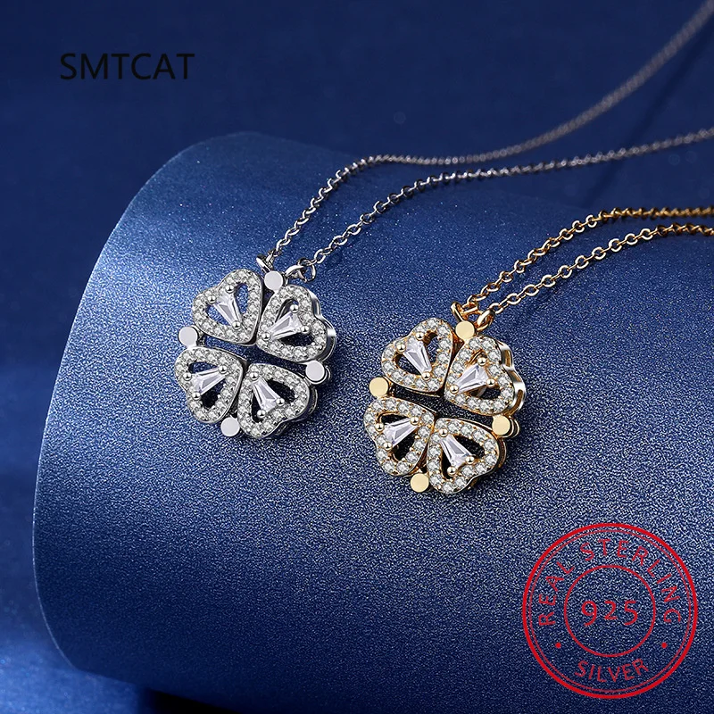 925 Sterling Silver Clover Necklace Four Leaf Heart Shape Pendant Necklace for Women Hart Luxury Jewelry Sale Dropshipping